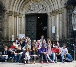 Die englisch-deutsche Schülergruppe vor dem Bremer