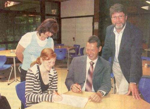 Schulleiter Jürgen Eggers und ihre Klassenlehrerin, Martina