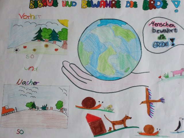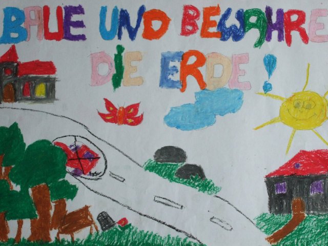 Schüler und Schülerinnen setzen sich kreativ mit dem Schöpfungsauftrag „Bebaue und bewahre die Erde“ (1. Mose 2, 15) auseinander.