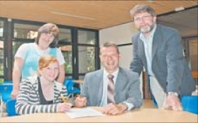 Größl und Uwe Fauth schließen im Beisein von Schulleiter Jürgen
